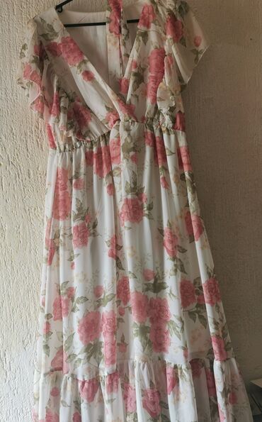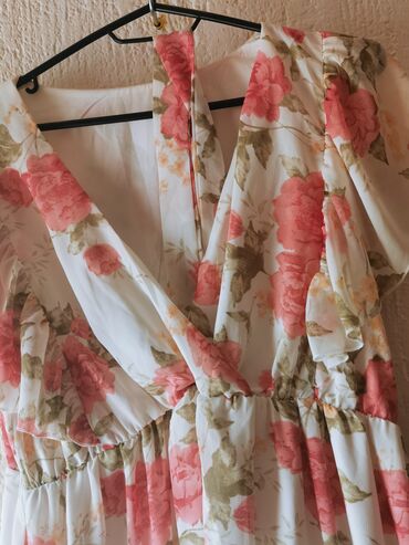 Romantičan model idealan za letnje dane, proslave, venčanja na otvorenom i svakodnevne kombinacije uz sandale ili štikle. Svilenkast pad materijala i cvetni motiv pružaju ženstven, nežan izgled.