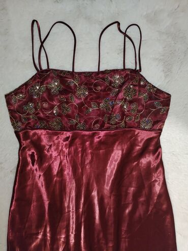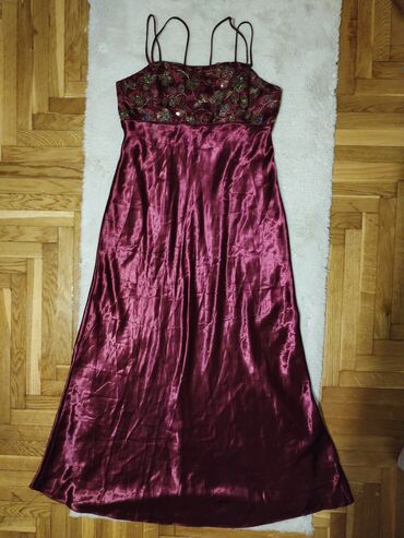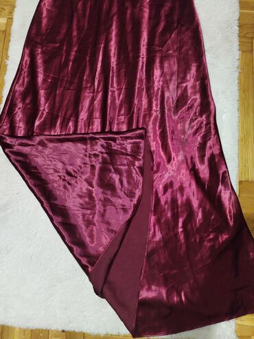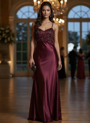 Elegantna duga haljina – bordo/sedefasti sjaj - Kroj: duga, lepršava