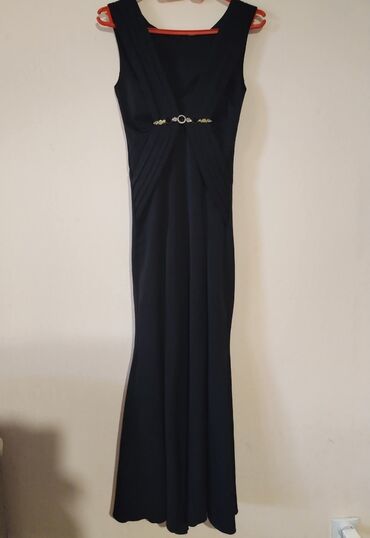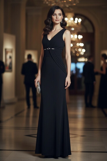 Elegantna duga crna haljina bez rukava. - Kroj: duga, blago sirena