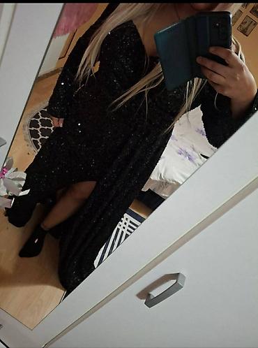 Elegantna midi haljina (odgovara veličini S/M) jednom nošena. - Materijal: glatka satenska tkanina sa suptilnim sjajem i finim šljokičastim odsjajem. - Kroj: ženstvena silueta sa strukom naglašeni...