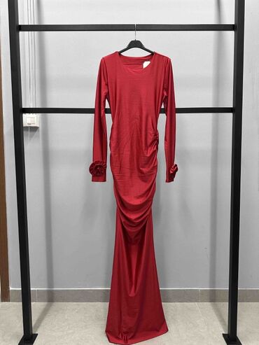 💃Duga crvena večernja haljina sa dugim rukavima. Uska silueta koja