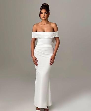 - Gornji deo: bardot/off-shoulder sa širokom, plisiranom trakom oko grudi i ramena