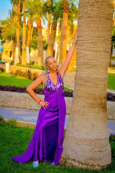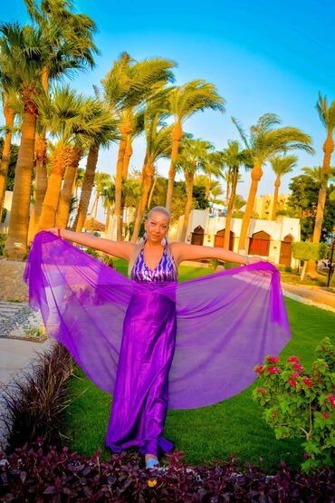 Zelena tačka,3 m iznad neba i probušeno,zauvek. Duga haljina u jarko ljubičastoj boji sa efektom sirene i providnim plaštom/šalom.
