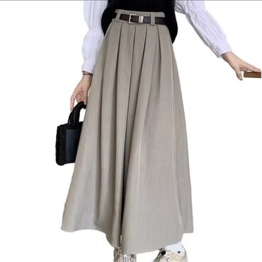Plava midi suknja sa faltama – Lilium veličina S M - Brend: Lilium (etiketa vidljiva na fotografiji) - Kroj: A-linija sa dubokim faltama, visok struk sa petljama za kaiš - Dužina: midi - Materija...