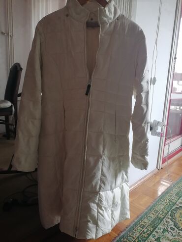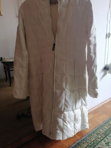 Duga ženska zimska jakna perjana /kabanica u krem-beloj boji.