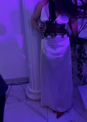 Elegantna duga haljina od satena sa čipkanim korsetom