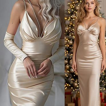 💫Svečana duga haljina od satenskog sjajnog materijala, dostupna u crnoj, bež i kraljevsko plavoj boji