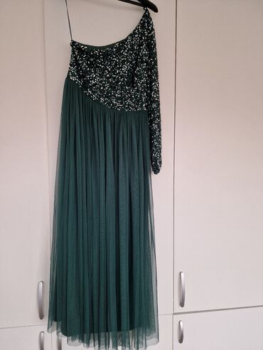 Elegantna duga haljina u smaragdno zelenoj boji - Kroj: asimetrična –