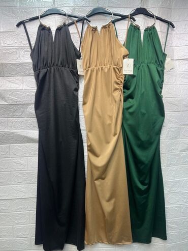 Elegantna duga haljina sa metalnim prstenom oko vrata Cena 2500 din S