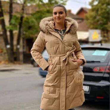 Duga ženska zimska jakna sa kapuljačom i krznom