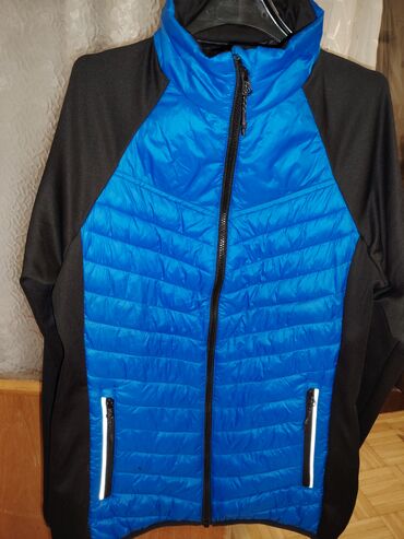 - Model: hibridna jakna sa kombinacijom materijala – prošiveni, lagano postavljeni paneli napred i pozadi (plava boja) uz elastične crne bočne panele i rukave.