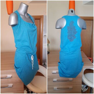 P.W.L ženska haljina bez rukava, tirkizno-plava.