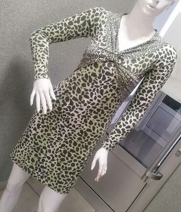 Haljina sa životinjskim printom, dugih rukava i V-izrezom. U predelu grudi se nalazi ukršteni detalj koji doprinosi njenom elegantnom izgledu. Idealna je za večernje izlaske ili posebne prilike.