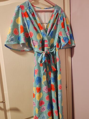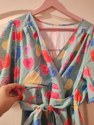 Haljina na preklop sa pojasom – šareni „candy hearts“ print