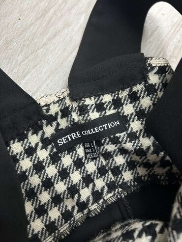 - Materijal: mešavina sa strukturom na gornjem delu (pepita), glatka tkanina na suknji