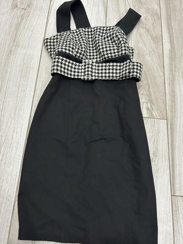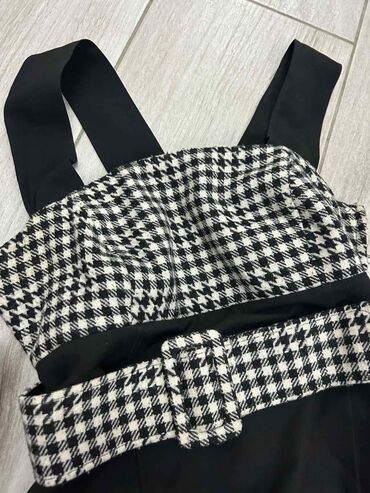 - Dizajn: gornji deo i kaiš u crno‑belom pepita (houndstooth) dezenu; donji deo jednobojan, crn