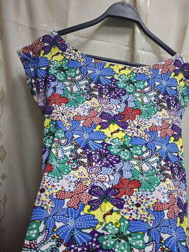 Majcaa sa cvetnim printom - Model: ravna, ležerna haljina bez rukava