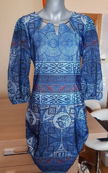 Haljina sa etno/mozaičkim plavim printom, veličina L.