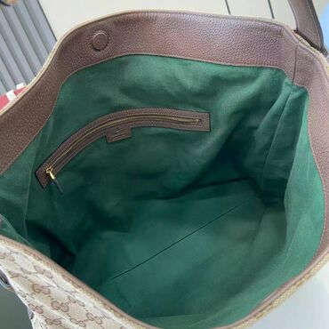 Gucci kožna torba – maslinasto zelena, veliki shopper/hobo model - Materijal: glatka prirodna koža spolja; unutrašnjost obložena u tonu maslinasto zelene tkanine - Boja: maslinasto zelena - Zatvar...