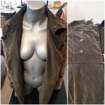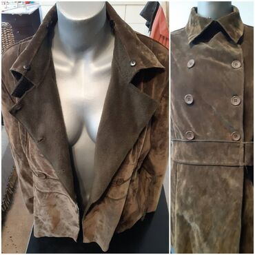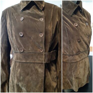 Ženska jakna/kaputić Favori, veličina 44. - Dužina: 66 cm - Poluobim: 50 cm - Model: strukiran s pojasom koji se veže - Zatvaranje: dugmad sprijeda - Dizajn: kombinacija glatkog materijala u t...
