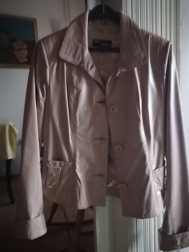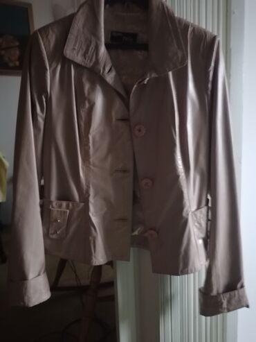 - Ženska jakna BONITA, svetlo bež boje.44 veličina, duži kroj do ispod kukova, klasična kragna. Kopčanje na rajsferšlus i pritiskače. Dva velika prednja džepa sa preklopom i dugmetom, kao i bočni u...