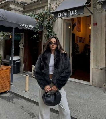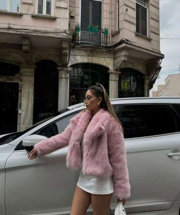 Kratka ženska jakna izrađena od veštačkog krzna, idealna za prelazni period i hladnije dane. Krzno je mekano i pufnasto, pružajući udobnost i topao osećaj. Jakna ima široku kragnu i duge rukave. Dostupna je u različitim bojama, uključujući roze, braon, sivu, crnu i belu, što omogućava lako kombinovanje uz različite odevne kombinacije. Kopčanje je diskretno, a kroj je opušten i moderan.