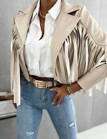 🔥Ženska jakna sa resama – kroj biker/boho - Materijal: imitacija brušene kože (mekana, prijatna na dodir, lepo pada)+381 66 94231xx