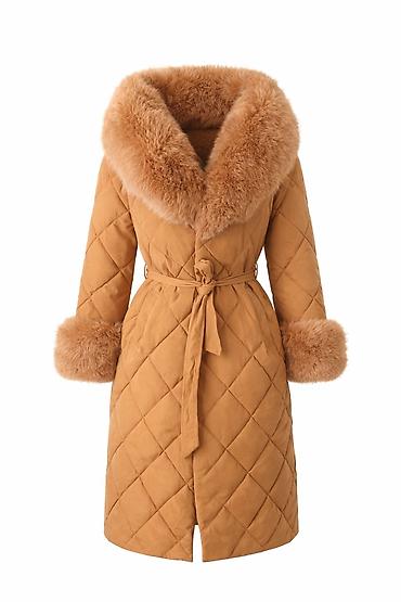 Ženska prošivena zimska jakna/kaput u kamel nijansi. Placena 9900.