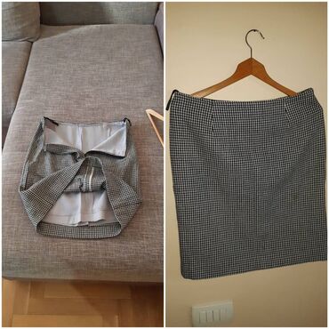 Akcija! Nova Zara suknja, postavljena, slic pozadi, prelepo stoji... Vel M. Struk poluobim 38cm., kukovi 48cm., duzina 61cm.. 70%poliester, 27%rayon 3%elastina...Tamno siva.