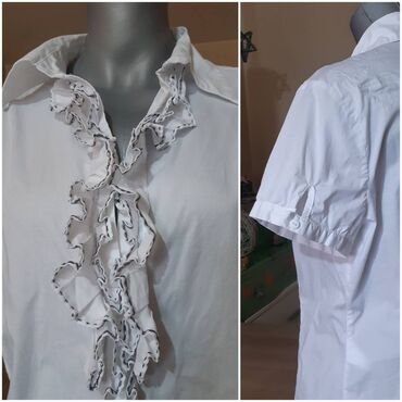 Bela ženska košulja na dugmad, komotnog kroja. - Materijal: lagana, mekana tkanina (prijatna za kožu, pogodna za svakodnevno nošenje). - Dizajn: klasična kragna, pun dugmadni niz spreda, blago ...