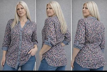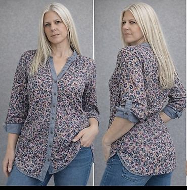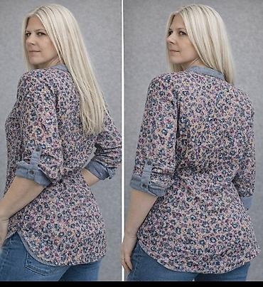 - Dizajn: sitan cvetni dezen u nijansama roze, ljubičaste i plave; kontrastni jednobojni detalji u sivo-plavoj boji (kragna, dugmad, unutrašnja manžetna i prednja lajsna)