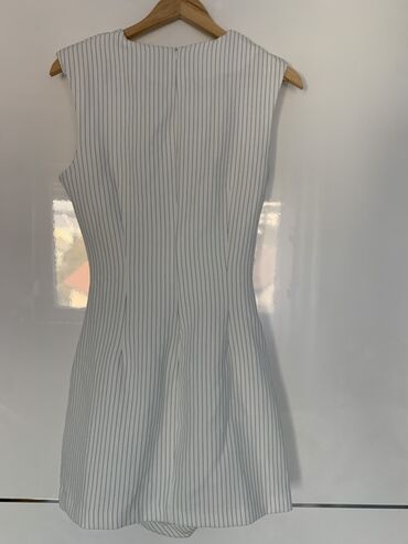 - Boja/patern: bela podloga sa tankim vertikalnim crnim prugama (pinstripe)