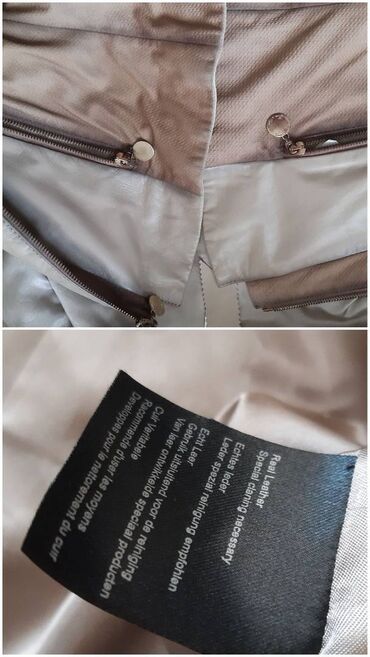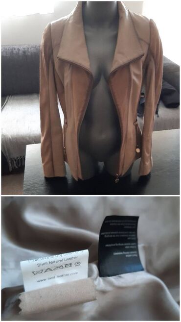 - Materijal: prirodna koža (oznaka na etiketi: Shell Natural Leather). Unutrašnjost glatka postava u svetloj boji. Preporučeno profesionalno hemijsko čišćenje.