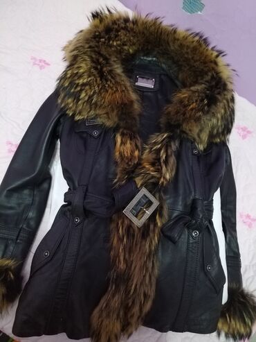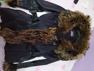 - Materijal: spolja mekana crna koža; bogat krzneni ovratnik i reveri u prirodnim braon‑crnim nijansama; krzneni detalji i na krajevima rukava