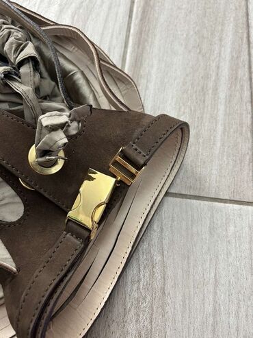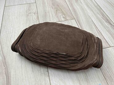 - Materijal: prava koža u više koncentričnih slojeva/rezova koji formiraju mrežastu “basket” strukturu; gornji delovi od brušene kože u tamno braon tonu.
