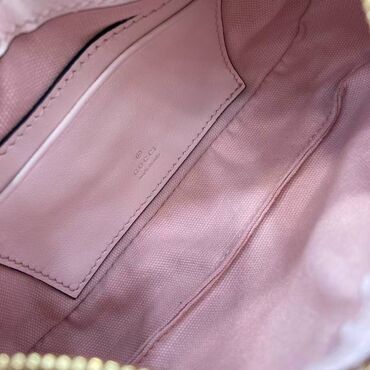 - Unutrašnjost: tekstilna postava u roze tonu, kožni džep/etiketa sa utisnutim logom