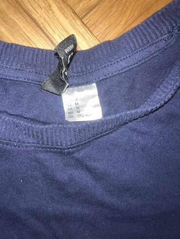 Sa ilustracijomTamno plava kratka majica sa printom “Wellness Society – Since 1993 – Recreational Sports” na prednjoj strani. Klasičan okrugli izrez sa rebrastim porubom, kratki rukavi, blago skraćen (crop) kroj. Na etiketi naznačena veličina M (EU/US/CA/MX/CN 170/90A). Materijal deluje kao mekani pamuk/žersej. Jednostavan i sportsko-kauzalan stil, pogodna za svakodnevno nošenje ili rekreativne aktivnosti.