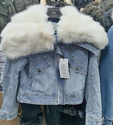 Ženska kratka teksas jakna sa krznom.
