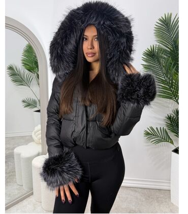 Perfect - XL crna zimska jakna sa kapuljačom i krznom. Poluobim 56cm