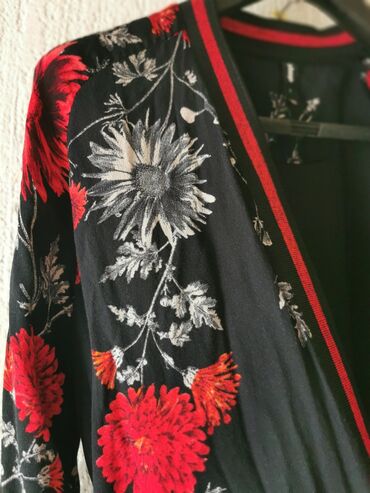 - Boja: crna osnova sa crvenim i sivim cvetnim motivima