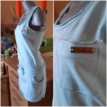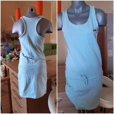 Haljina bez rukava, svetloplave boje, sportsko‑ležernog kroja.