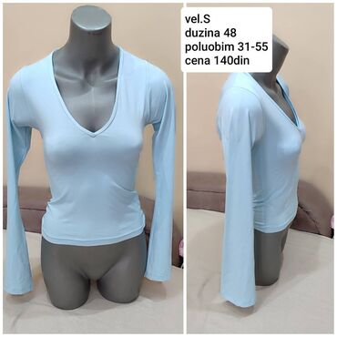 Bela ženska majica sa 3/4 rukavima i rajsferšlusom. - Dekolte u obliku širokog U, sa kratkim funkcionalnim rajsferšlusom sprijeda i blagim naborima oko zatvarača. - 3/4 rukavi sa mogućnošću pod...
