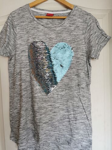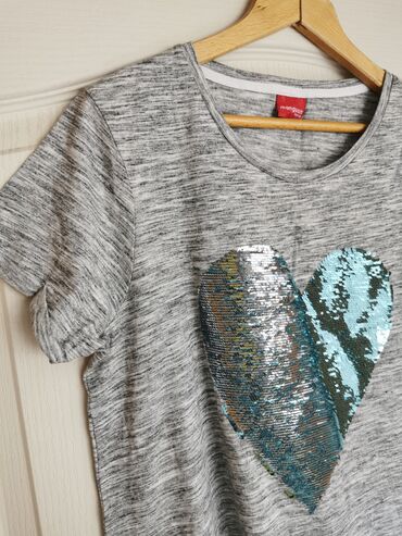 Siva ženska majica kratkih rukava sa šljokicama – brend Mangwin (etiketa vidljiva).
