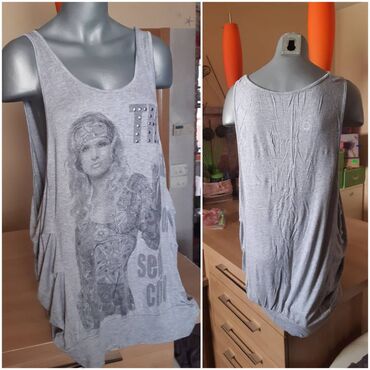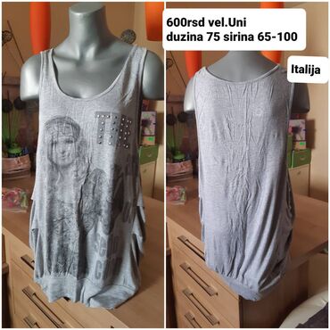 Siva ženska široka majica/tuunika bez rukava, italijanski model.