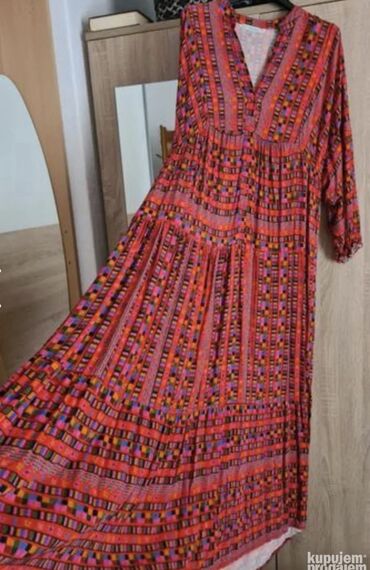Obe haljine: duga dužina, komforan oversized/relaxed kroj, pogodna za svakodnevne kombinacije, putovanja ili plažu; lako se stilizuju uz sandale ili patike. UNIVERZALNA VELICINA. Zaista predivne, jesu upotrebljena u smislu sto sam ih morala oprati prije nego sto sam ih ubacila u regalu. Nisam ih nosila, jer sam shvatila da se ne vidim u njima, da vise idu uz zene koje su sitnije u gornjim ekstremitetima za razliku od mene 😊