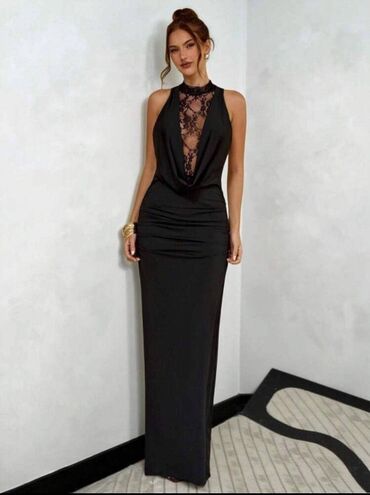 🔥Elegantna duga haljina - Model: duga uska silueta sa laganim “mermaid” padom - Dekolte: dubok drapirani V izrez sa čipkastim umetkom preko grudi i oko vrata 2700 din