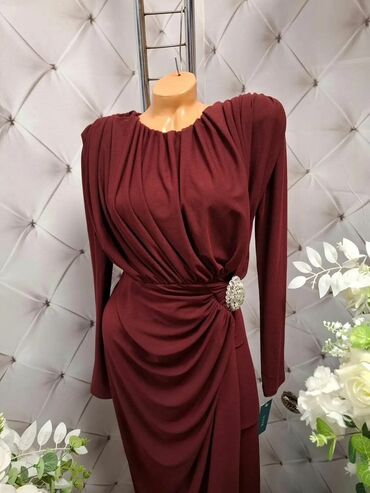 Elegantna večernja haljina – crna, duga, sa dramatičnim šlepom i visokim šlicem. - Kroj: sirena/suknja sa naborima napred, visoki otvor na butini, produženi asimetrični šlep sa strane. - Gornji de...