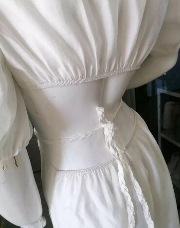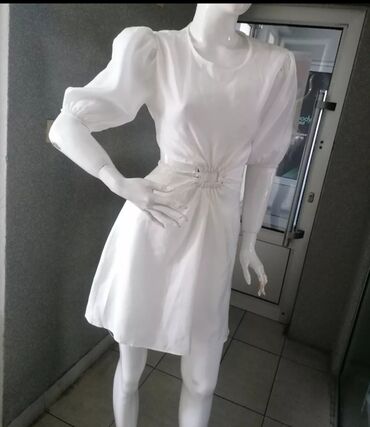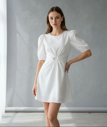 Bela mini haljina sa puf rukavima i detaljem u struku