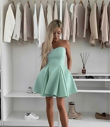 Elegantna večernja haljina – pastelno zelena, bez bretela - Kroj: sirena/usklađena silueta koja naglašava struk i liniju tela, dužina do poda - Izrez: srcoliki korzet bez naramenica, sa diskretnim...
