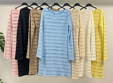 Ženska mini haljina s dugim rukavima – rebrasti teksturni dezen